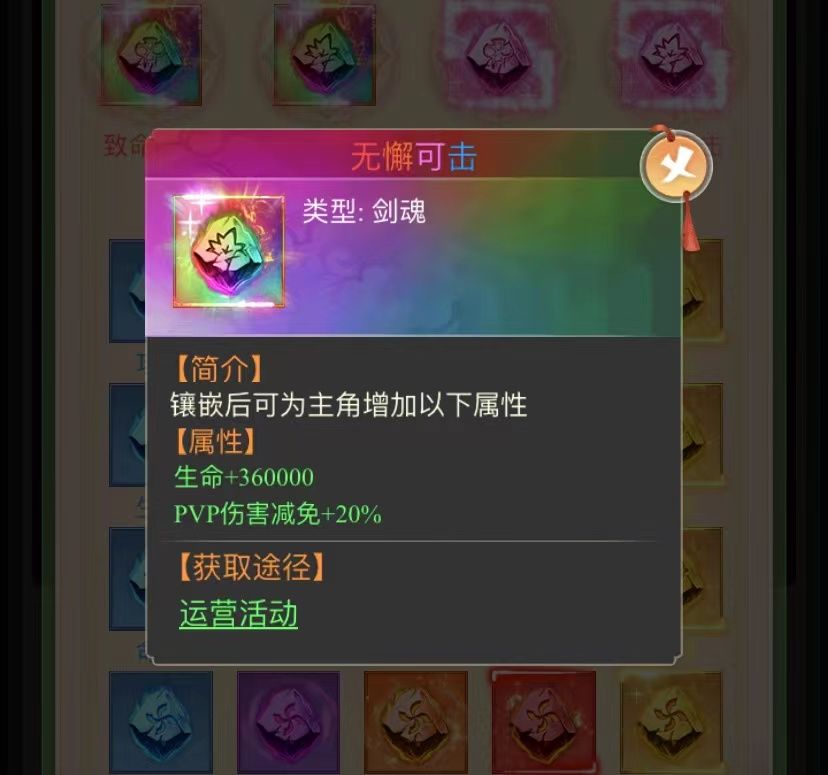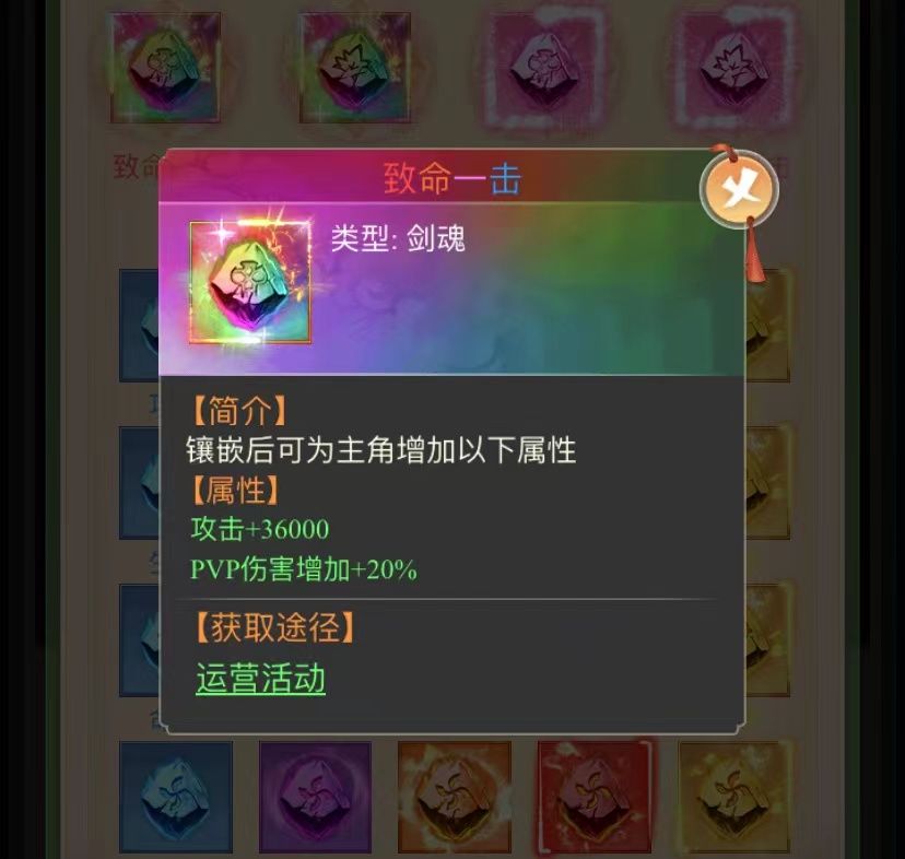 剑魂的开启条件是开服35天后开启。在配置剑魂是时候玩家一定要配置PVP减免伤害或者PVP增加伤害的剑魂。这里小编推荐配置核心剑魂——致命一击/无懈可击。因为在PVP对战中这是很关键的的存在,在战力差不多的情况下,增加了自己的对战伤害还是减免了对方给你造成的伤害都是在决定这战斗胜负的关键。