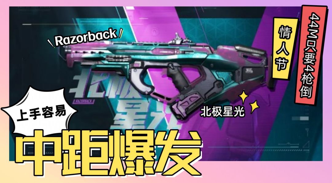 在当前版本中,Razorback机动性到增强。射程呈3段衰减,比起其他冲锋枪1-2段衰减幅度较大。因此提高射程可以有效发挥中近距离的范围伤害!