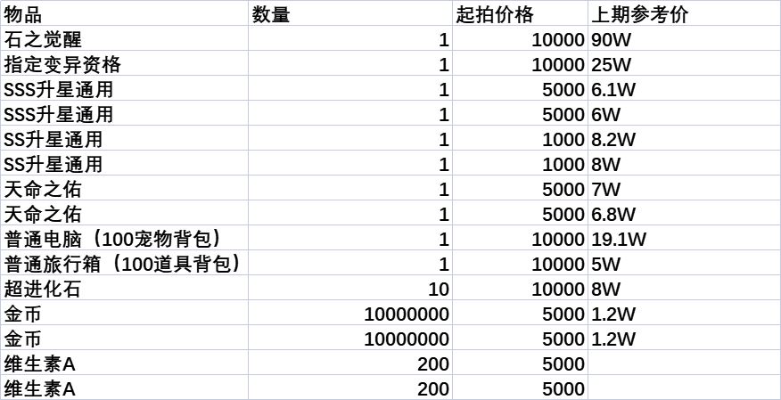 GM拍卖物品如下