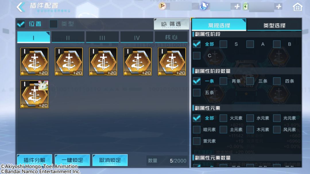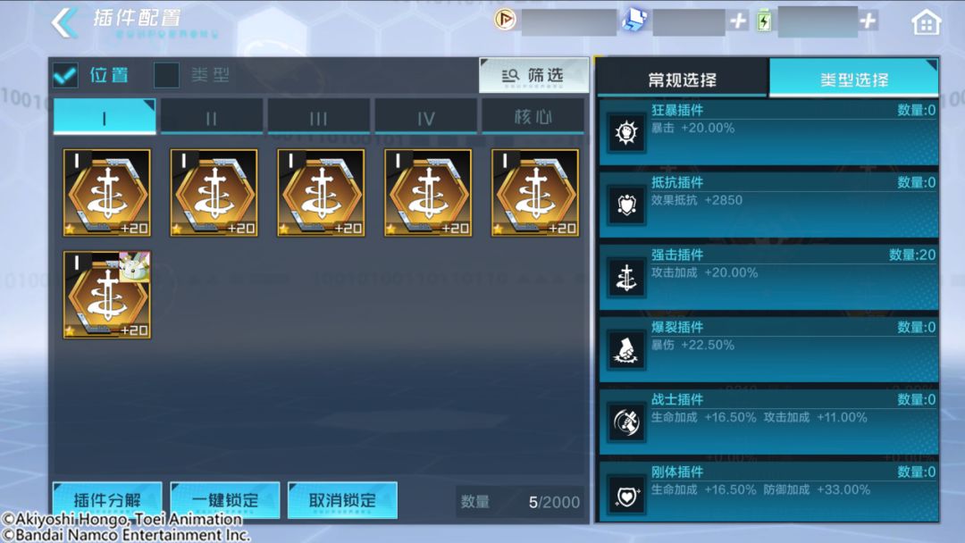 玩家可在插件配置页面根据新增的筛选条件进行筛选并一键锁定,之后在插件分解页面选择对应品质后进行一键分解(锁定的插件不会被分解)