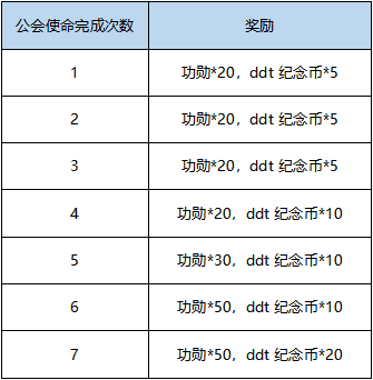 活动时间:1月5日00:00:00 - 1月11日23:59:59活动规则:活动期间,完成公会使命达到指定的次数,即可获得对应阶段的奖励。