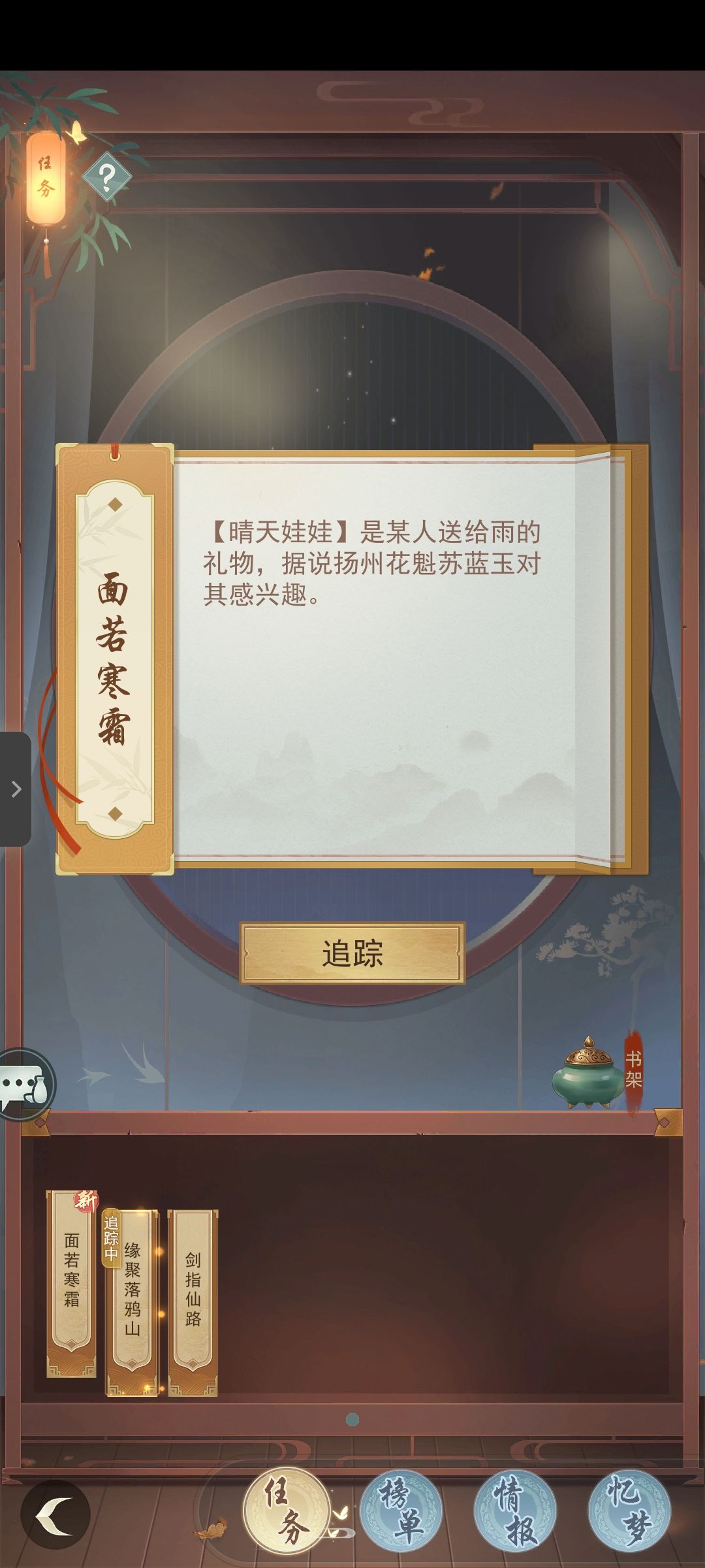 另外我是跟着雨的任务从扬州来荆州的,和暗影的任务顺路,一路给了一些结缘牌,最后获得了风雨棋局的绝卡