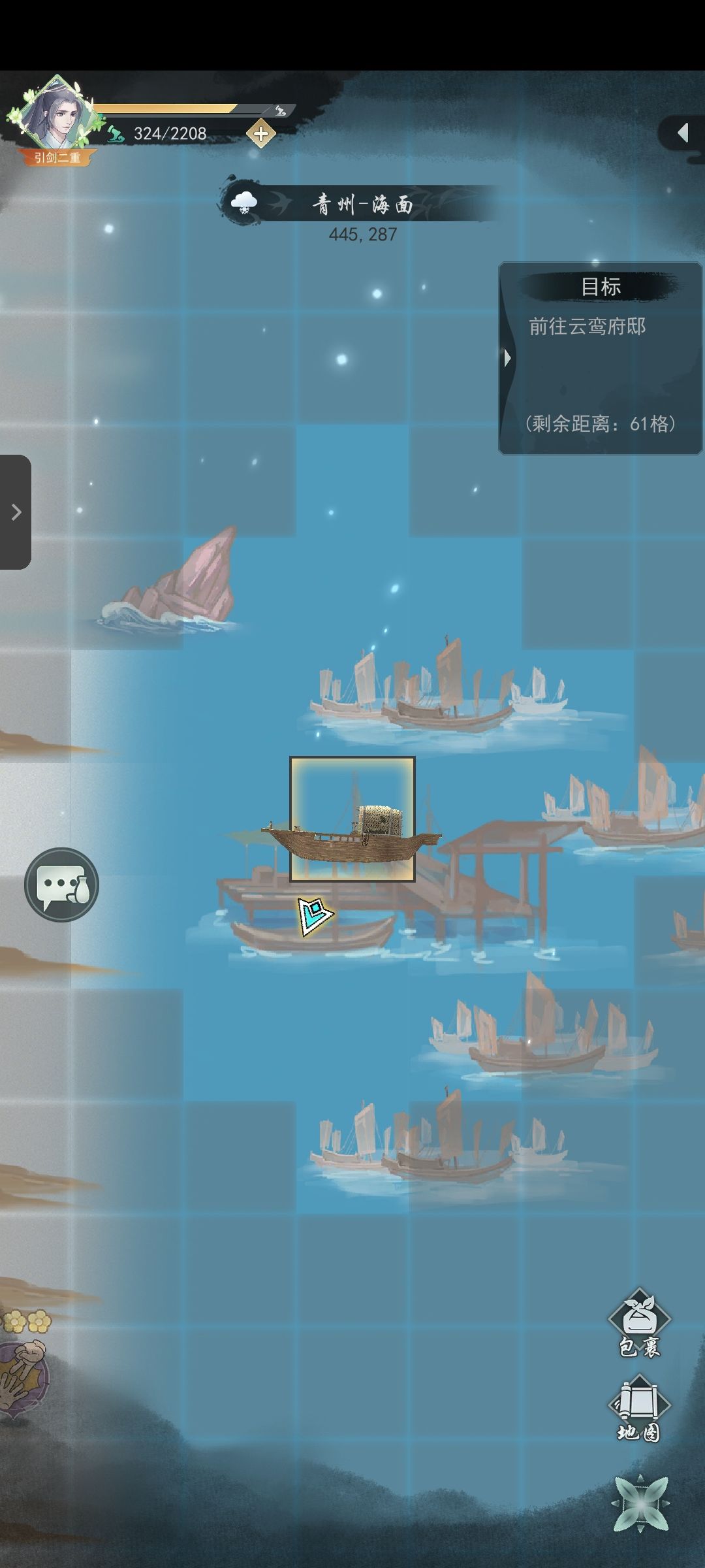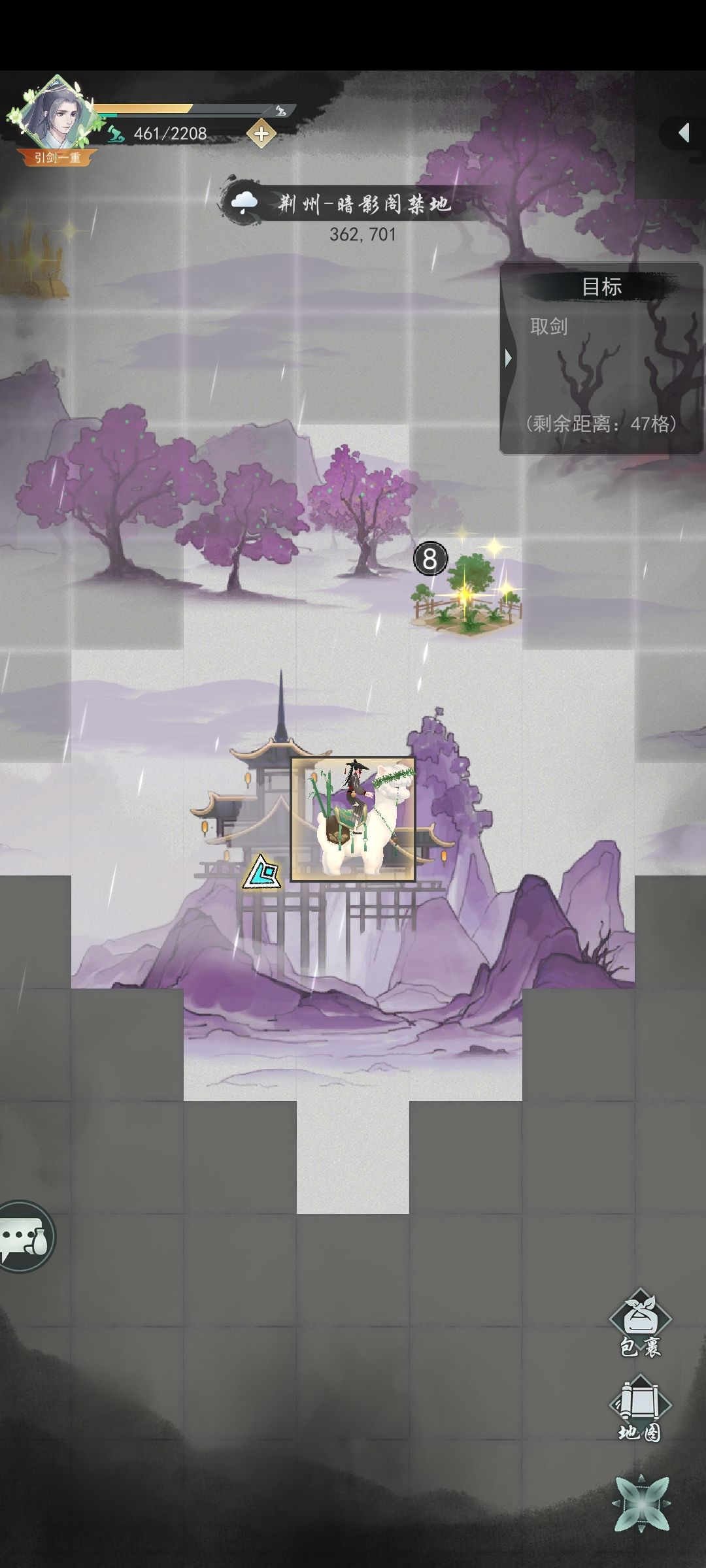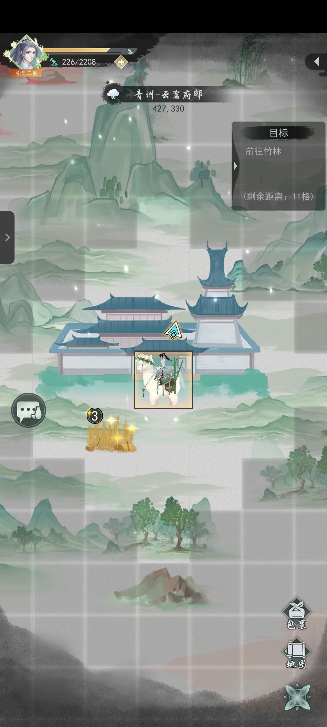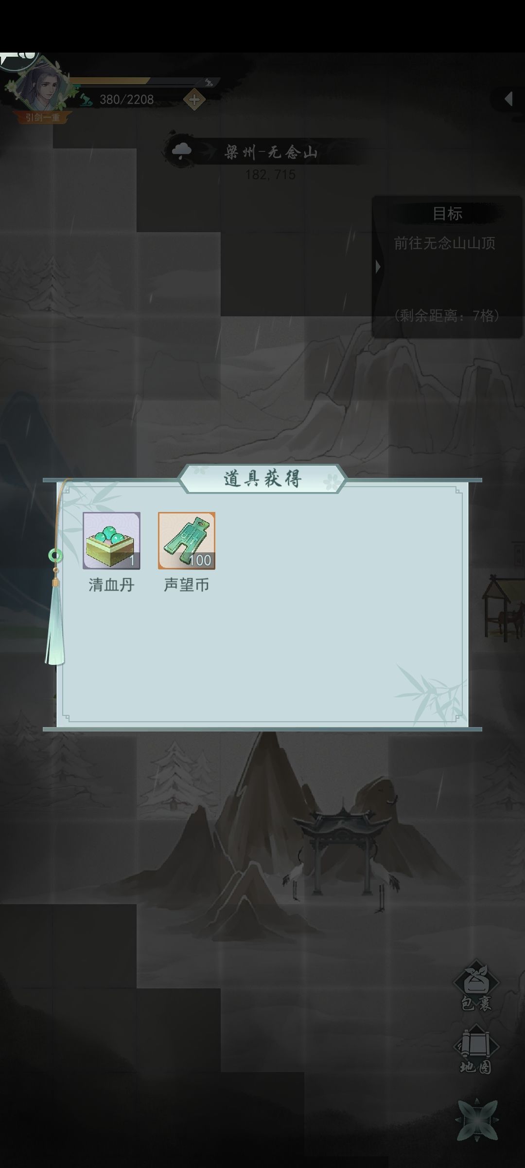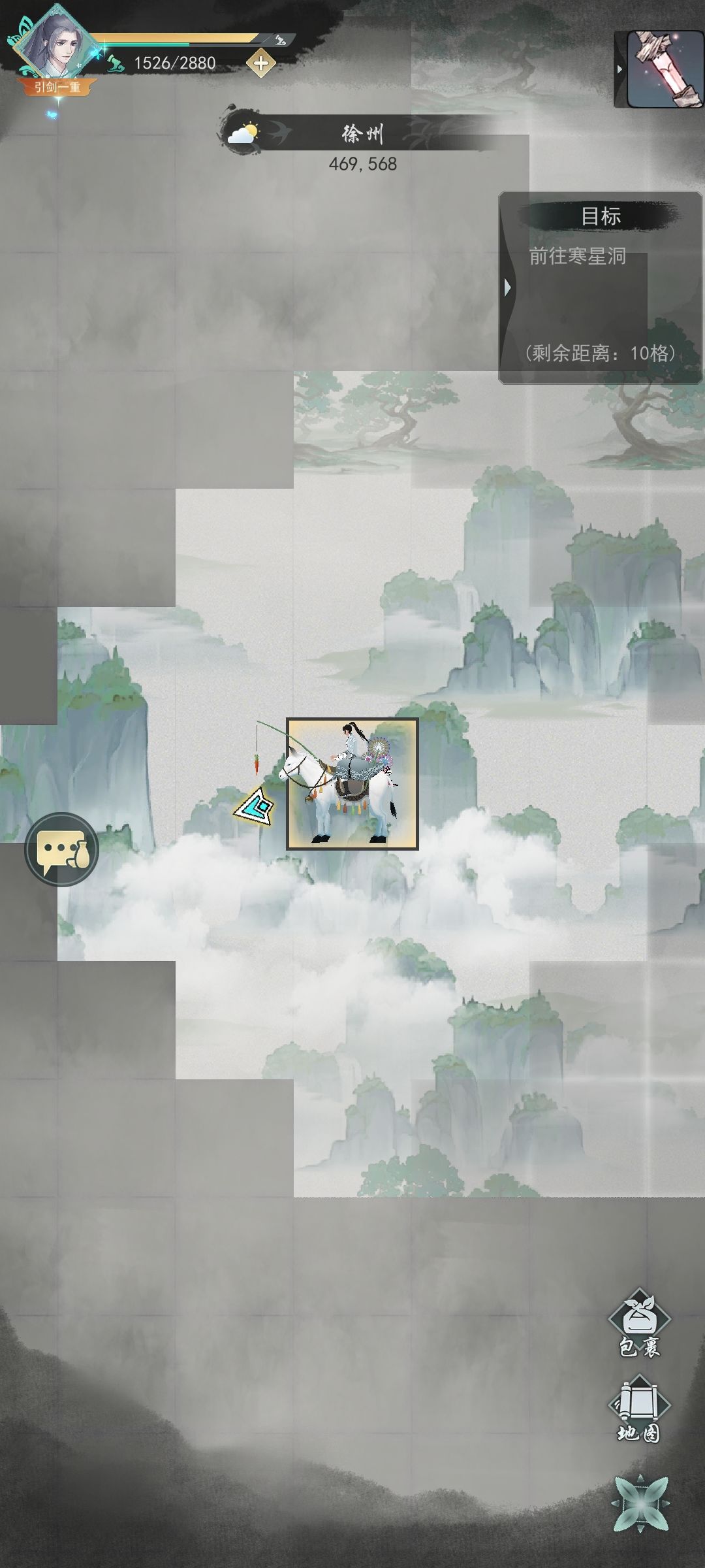 侠道右上角一定要拔剑不然奖励少很多