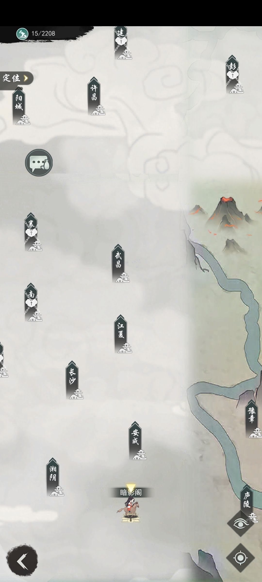 暗影阁坐标:338.712,线索:333.719,如图,需完成陆星河任务,提醒,找暗影直接点湘阴,右下角找333.719接任务!