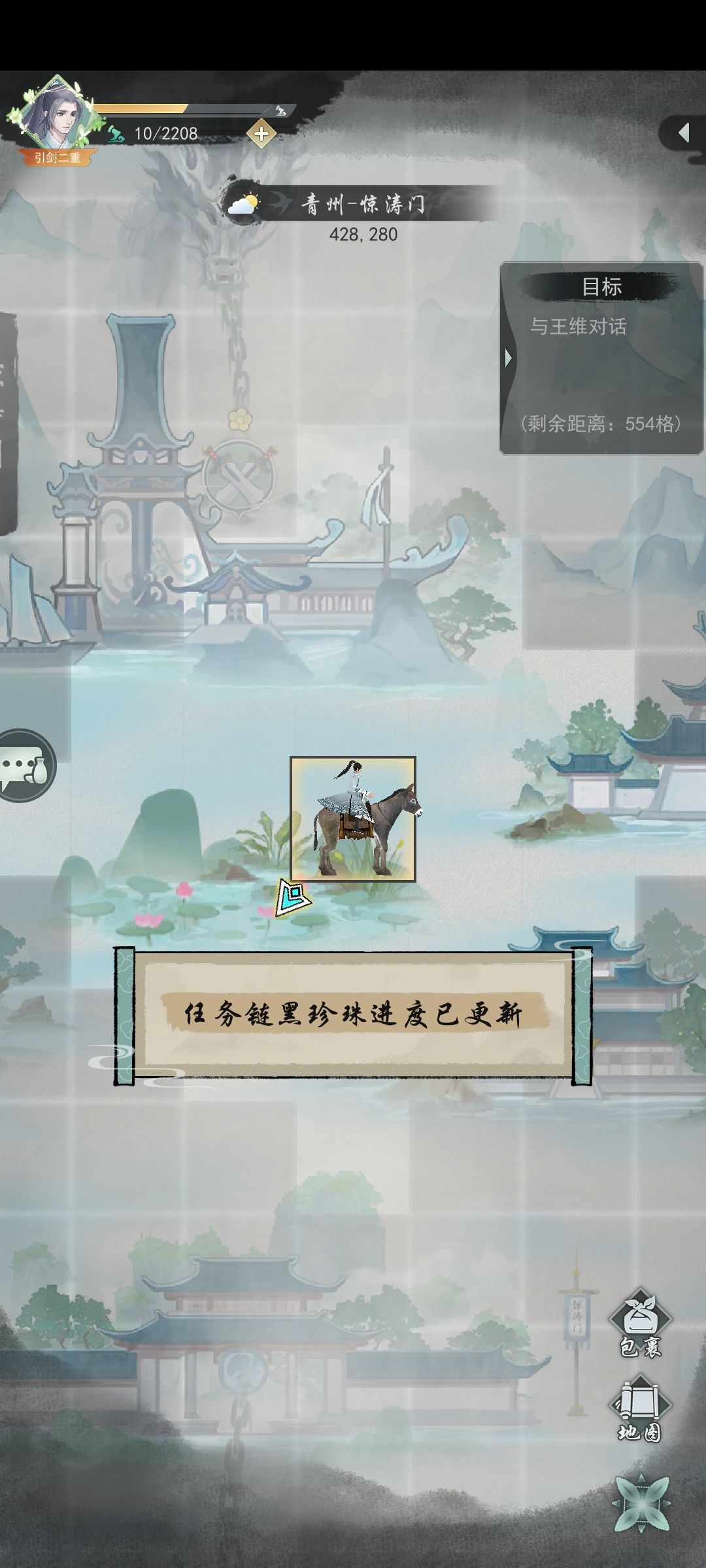 惊涛的任务线索428.280如图黑珍珠任务,在不夜右边