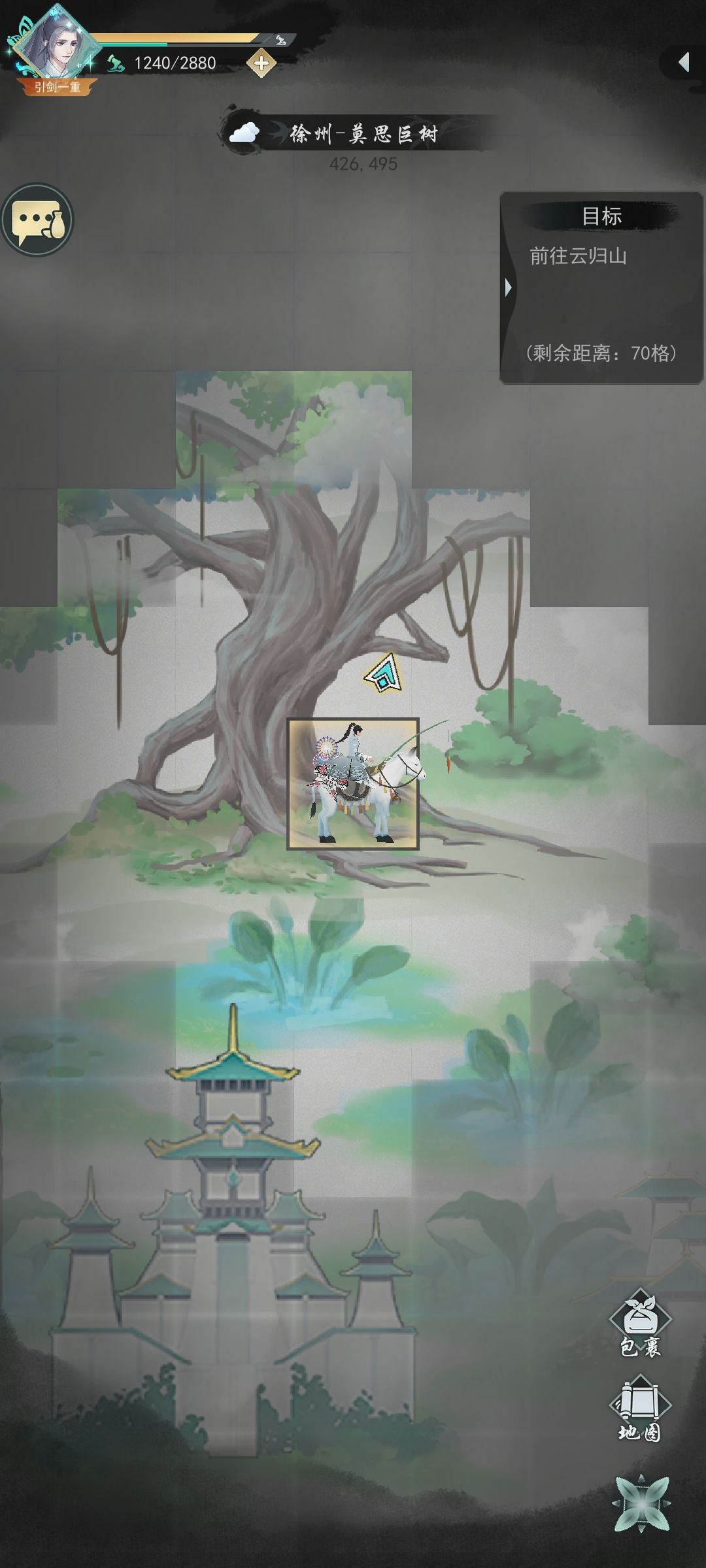 铸剑山庄任务地点如图 梓潼右上