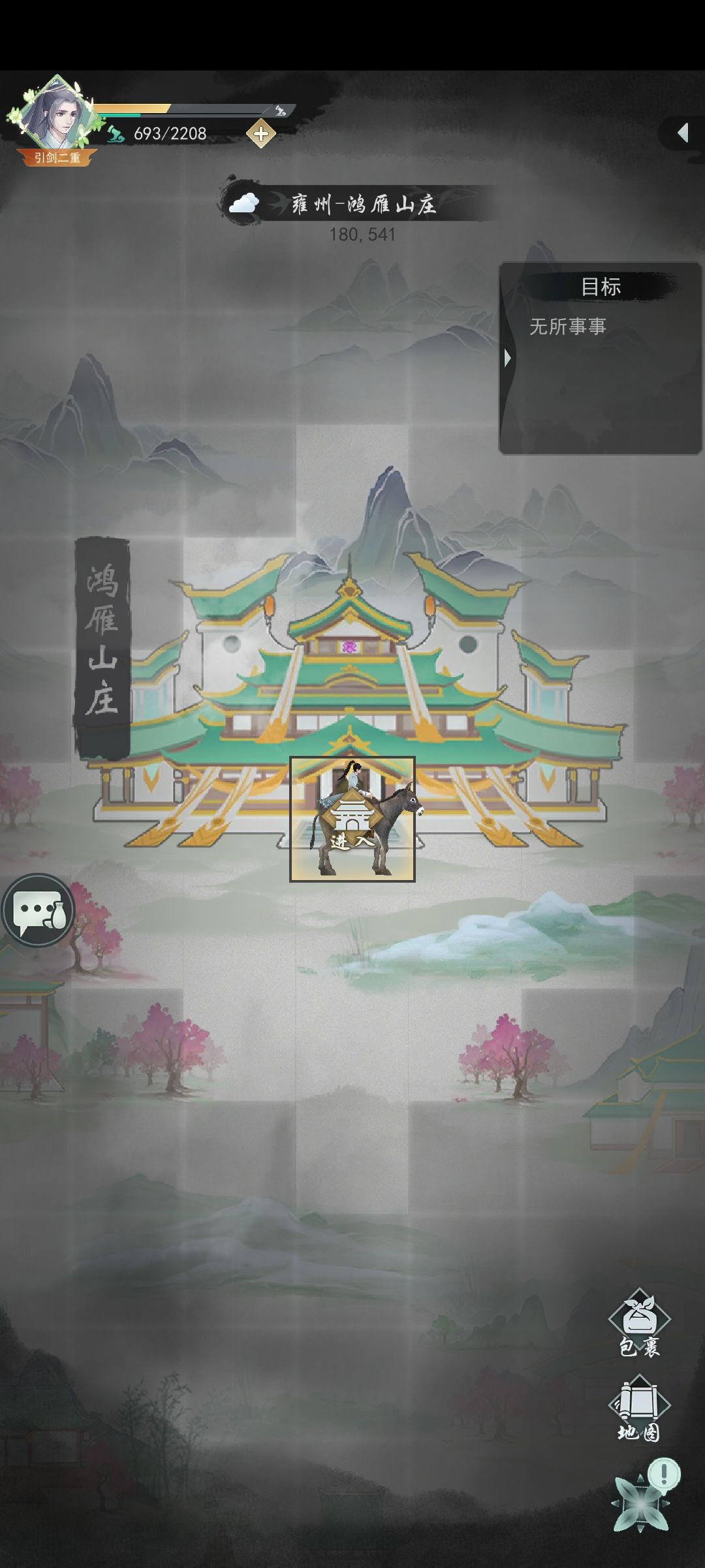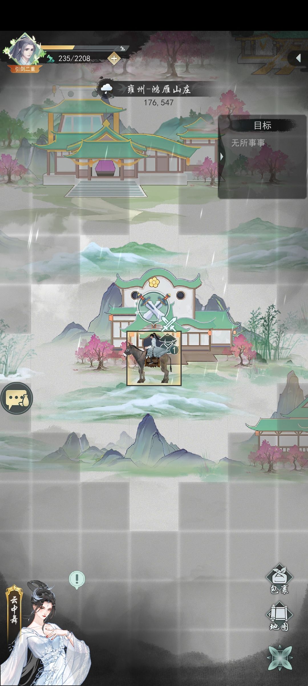 鸿雁山庄坐标:180,541,任务:176,541 武都左上