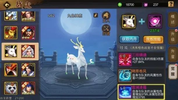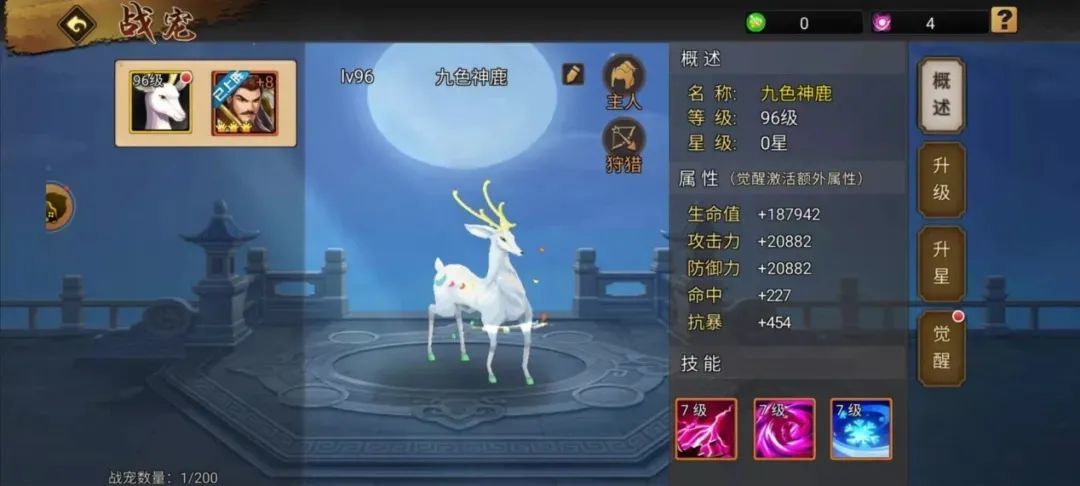 九色神鹿自2021年圣诞节出品以来,凭借其仙气十足的造型以及觉醒后的冰属性攻防加成,成为了众多主公帐下的冰之专宠!本文将着重和大家分享冰系战宠九色神鹿在游戏中的运用。