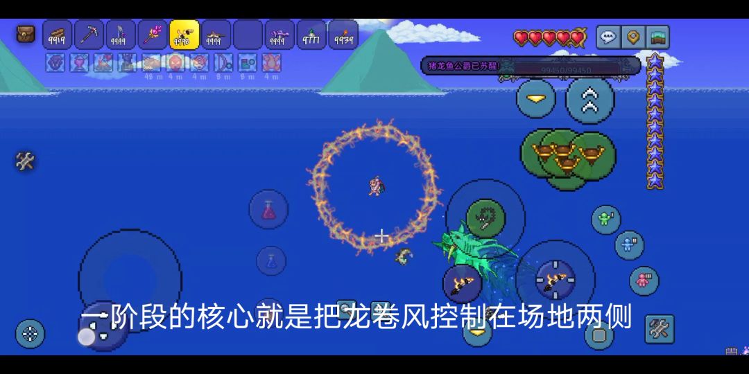 一二两阶段,我们的走位都是围绕猪鲨的水龙卷展开,目标就是把水龙卷控制在场地的两侧,只要把水龙卷控制在场地边缘,它就对我们造成不了任何威胁!