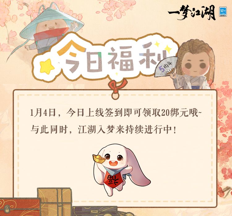 欢天喜地驱年兽,歌舞升平过兔年!1月6日全新玩法·瑞兽戏舞战鼓奏响,少侠们快集结好友,齐心协力驱赶年兽吧!