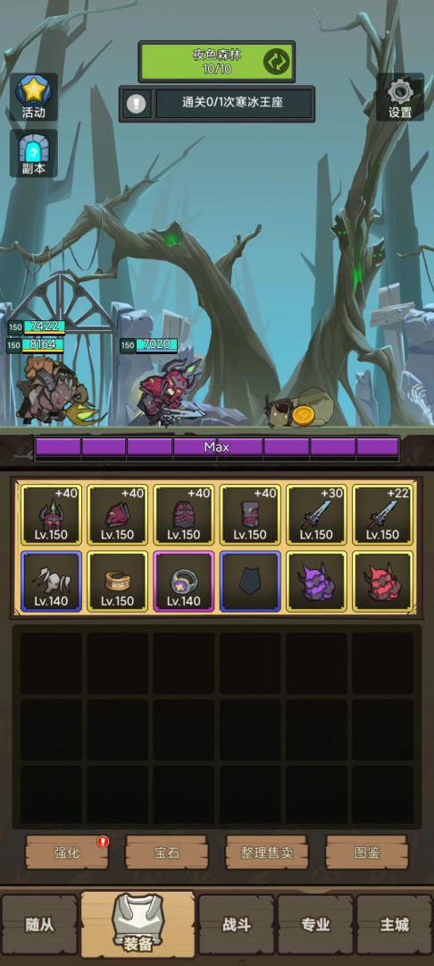 到了150,属性会压缩,开始注意属性搭配了,不然有的本要打不过了。