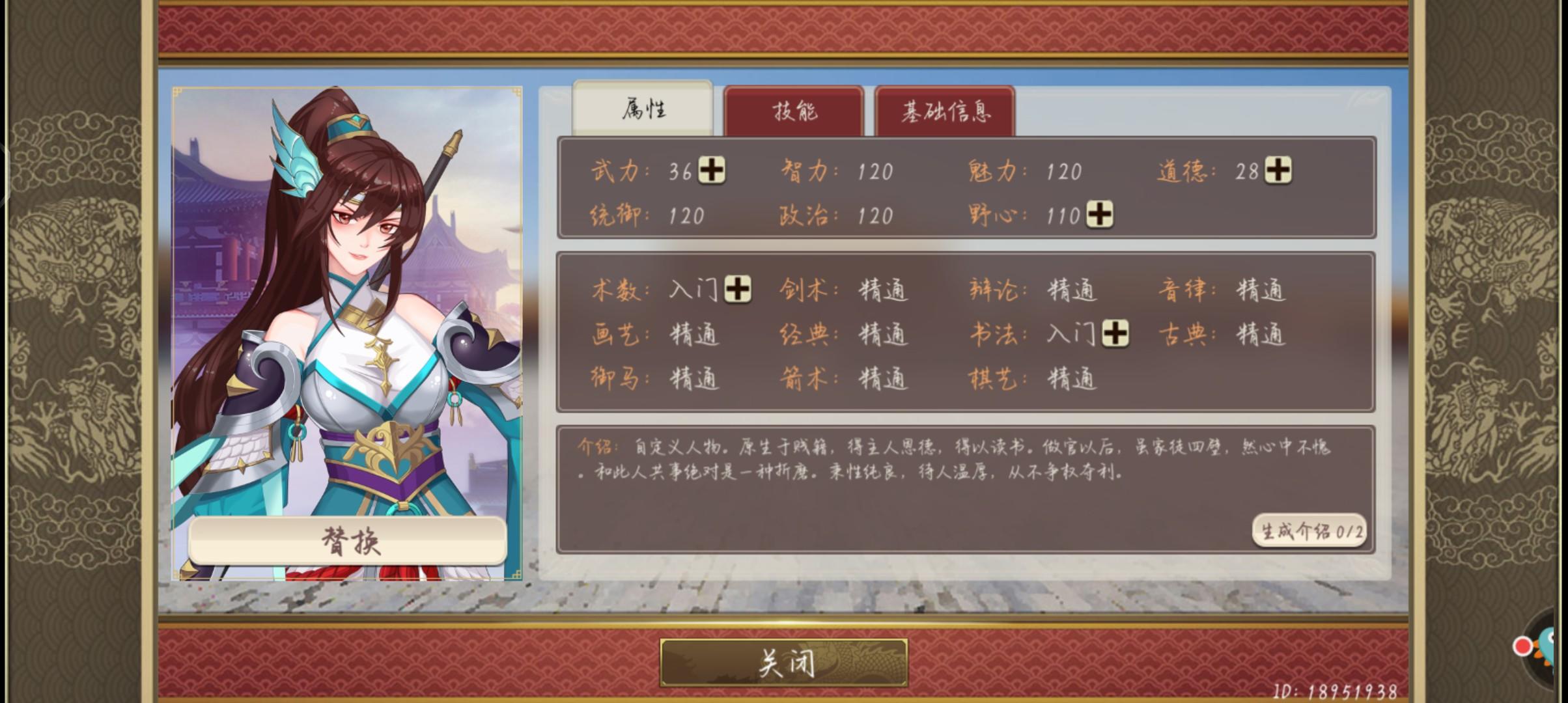 又破产了,这个升级太耗谋略了,我发现这个自定义人物可以在名臣和佳丽之间切换,然后底下的爱好名臣佳丽各不一样,要升俩遍,兄弟们你们花了多少贝币谋略把3个自定义人物全属性全爱好都升满了?我花了快20000了还没满