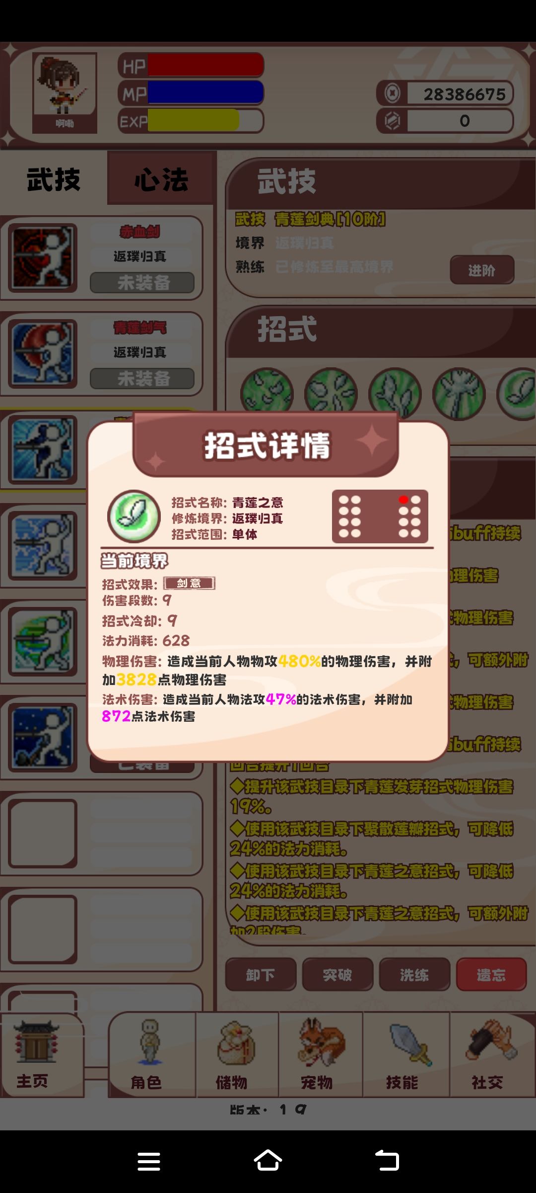 技能顺序:清风4-清风5-剑歌3(输出技能无限莲环)-剑典5(输出技能青莲之意)。