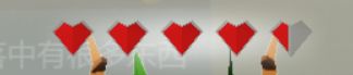 同理,生命值的右边看到一个火焰标记,则表示处于一个非常热的环境中,对生命会有威胁,要离开热源。生命值的右边出现一个雪花的标记,是在提醒着环境太冷,要尽快取暖。在吃了一些特殊的食物后,血条右边会出现一些罕见的图标——肌肉臂膀,表示在一定时间内变得更加强壮。
