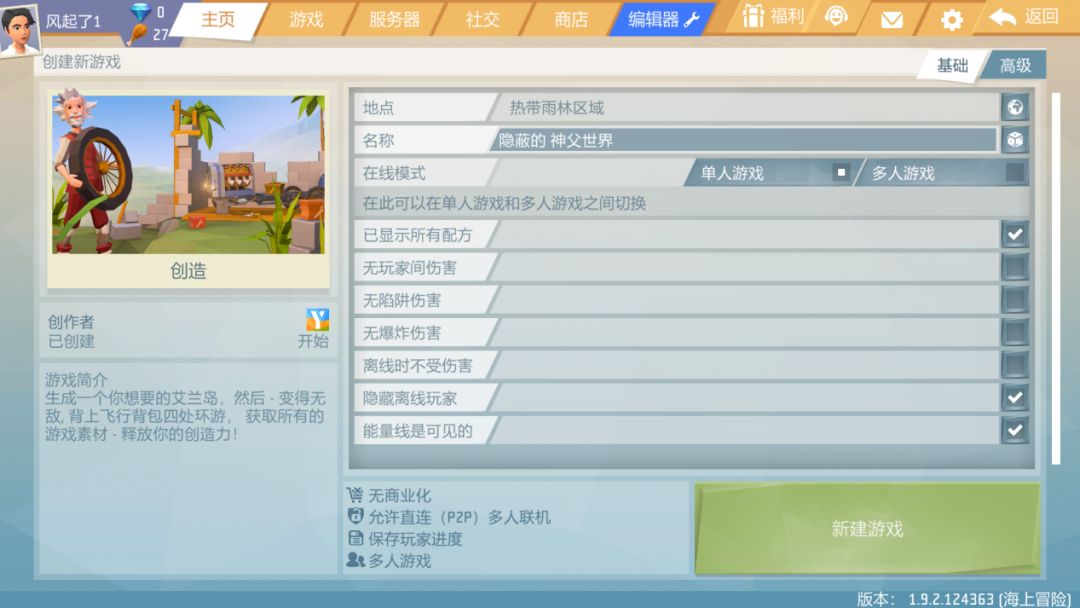 A:在创意工坊中找到中意的游戏后,点击“新建游戏”即可在根据其他岛主提供的创意设计建立属于自己的游戏房间了。进入游戏后,作者的游戏玩法以及操作方式都会逐一的教授。