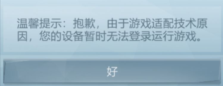 因游戏适配等技术原因,如您的机型本次如果无法正常运行游戏,打开游戏将会出现以下提示: