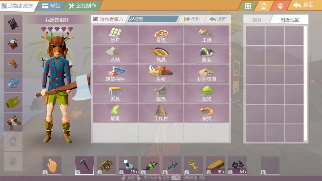 A:想要制作物品或工具,首先要打开【正在制作】,这里有非常详细的工具、道具分类,根据个人需要点击对应的按钮或图标进入查找(或直接输入词语进行搜索)。