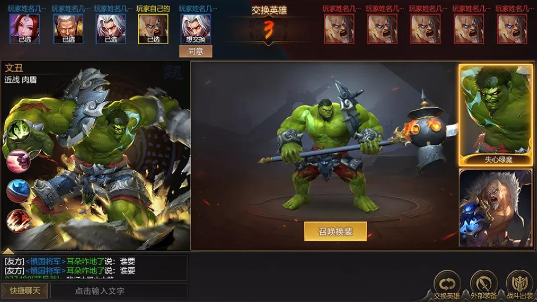 在所有玩家全部选择完英雄后,交换英雄的时间增加了25秒,在交换英雄的时间段内,点击“交换”按钮后,其他玩家的英雄头像下方会出现“交换”按钮。