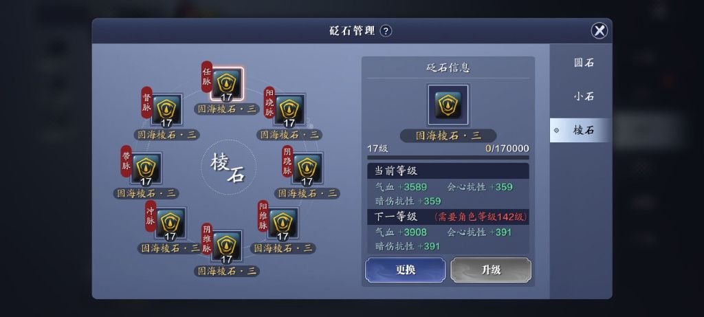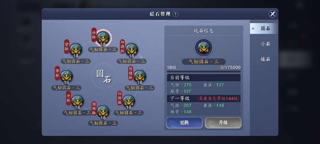 圆石:气韧圆石在PVP气劲、攻击、暗伤依然是主要考虑的属性。所以还是以气韧圆石为最佳,当然也可以考虑使用强蕴圆石,性价比高。