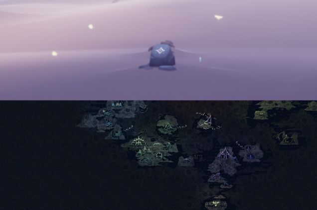 可能有些小伙伴还不知道神坛是什么。相信大家在地图中都看到过点蜡烛跪拜的小石头,跪拜完之后会出现一个地图,然后就能解锁相应的地图模块。细心的小伙伴肯定还发现了地图上会有四角形和蓝色的小人,那其实就是你那个地图中还有光之翼和先祖没有解锁(如果地图中同时存在先祖和光之翼没有收集的话可能不会同时显示出来,可能会优先显示先祖或者光之翼),还有个带翅膀的金色小人就是你所在的位置。