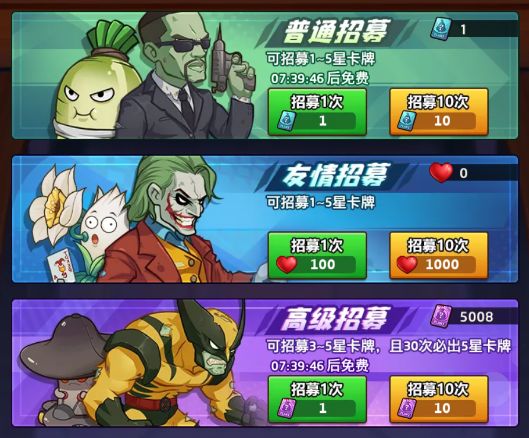 游戏内每次抽卡都可得到相应积分,也就是我们抽卡游戏俗称的低保,累积积分满1000后VIP3玩家可通过一次积分招募来获取随机五星同伴,性价比很高。