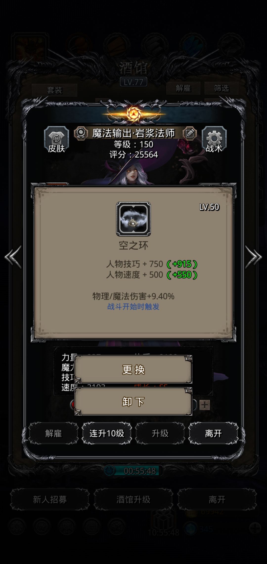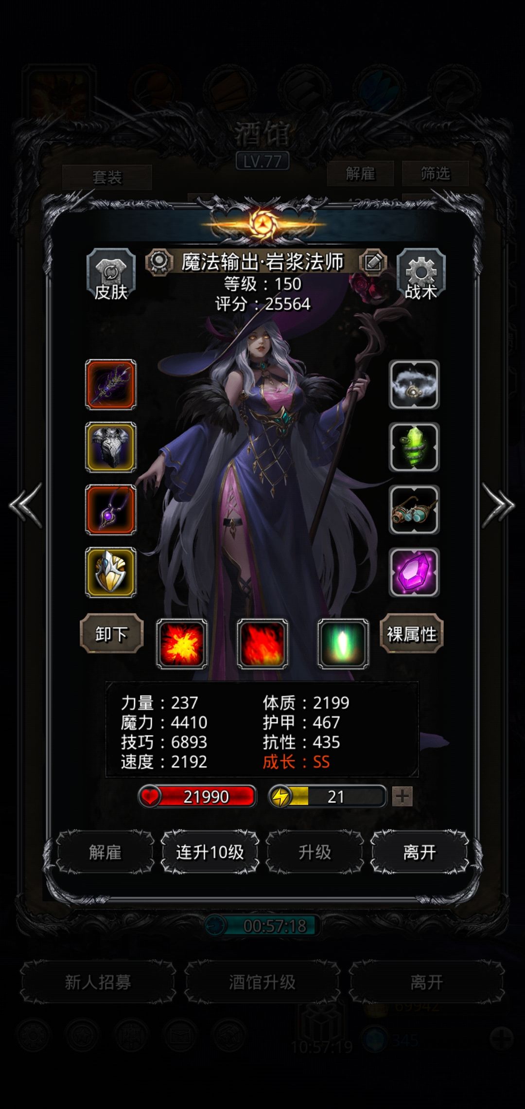 火法魔石是15%回复增加100%技巧,打法就是火法出特效后圣龙马上补反击,圣龙攻击出流血甲特效也可以补反击,最好的情况是两个都出特效补反击。巫医只奶圣龙,开局奶一下圣龙,后面需要在圣龙被攻击后奶,因为秒回不够,只能贪巫医的魔力回点