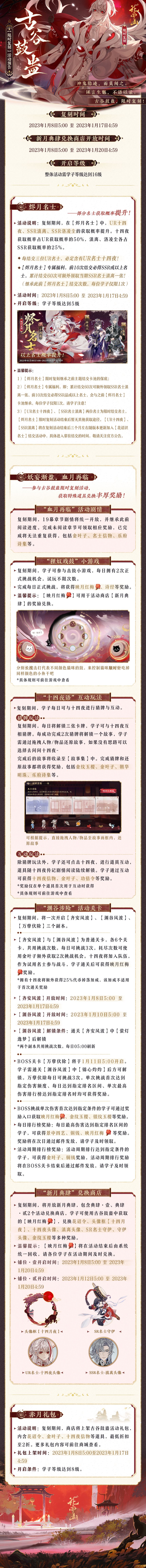 “古谷鼓蛊”复刻活动将于1月8日开启,更多具体活动内容请见长图。