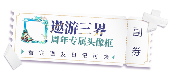 由道友【小小徐】设计的“遨游三界”周年限定头像框!看完道友日记即可领取喔~