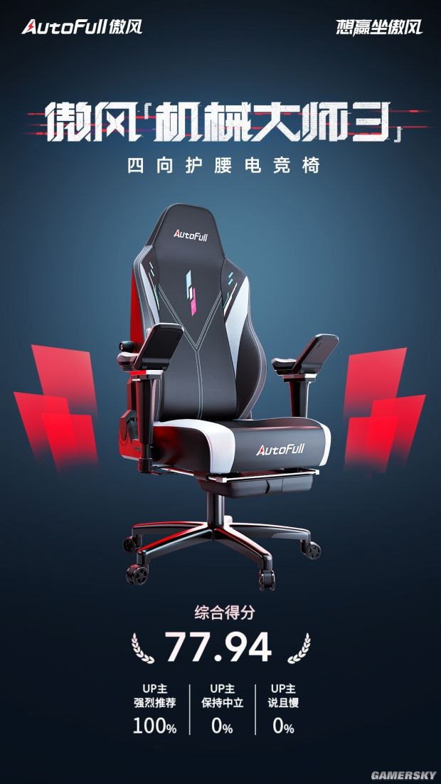 傲风M6,又称为傲风机械大师3四向护腰电竞椅,能获得UP主们的100%推荐,足见其产品体验上的卓越。