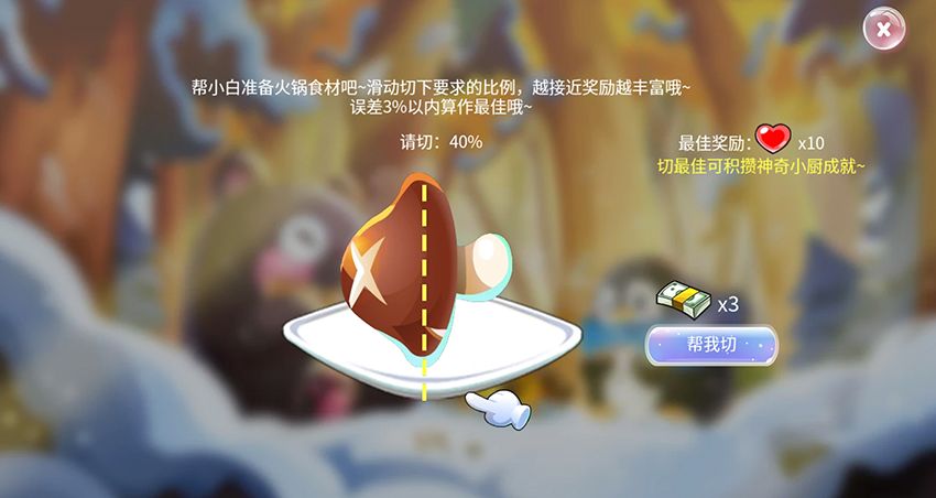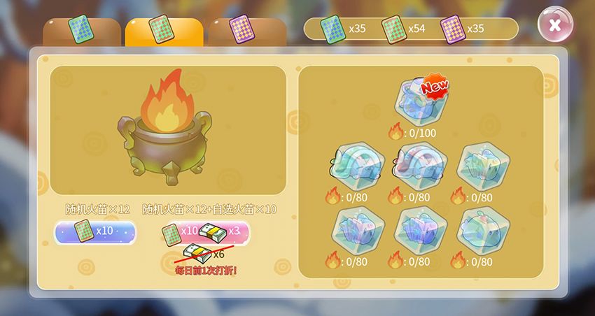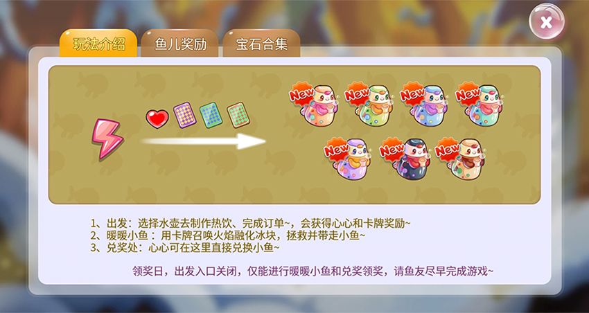 在暖暖小鱼环节,我们将使用前面获得的卡牌召唤火焰,随机融化右侧小鱼表面的冰块,冰块全部融化后即可带走对应鱼儿~