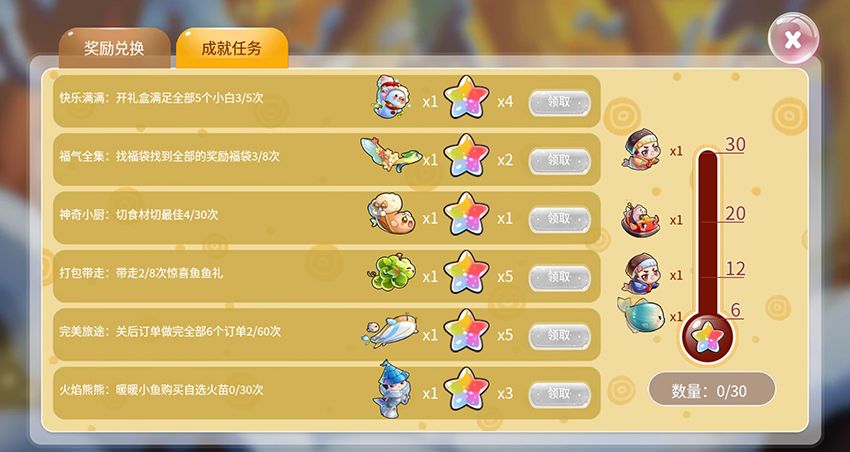 1、本活动分为三部分:出发!、暖暖小鱼、兑奖处;兑奖处中包含心心兑换和成就任务,大家可以查看任务后再进行活动哟~