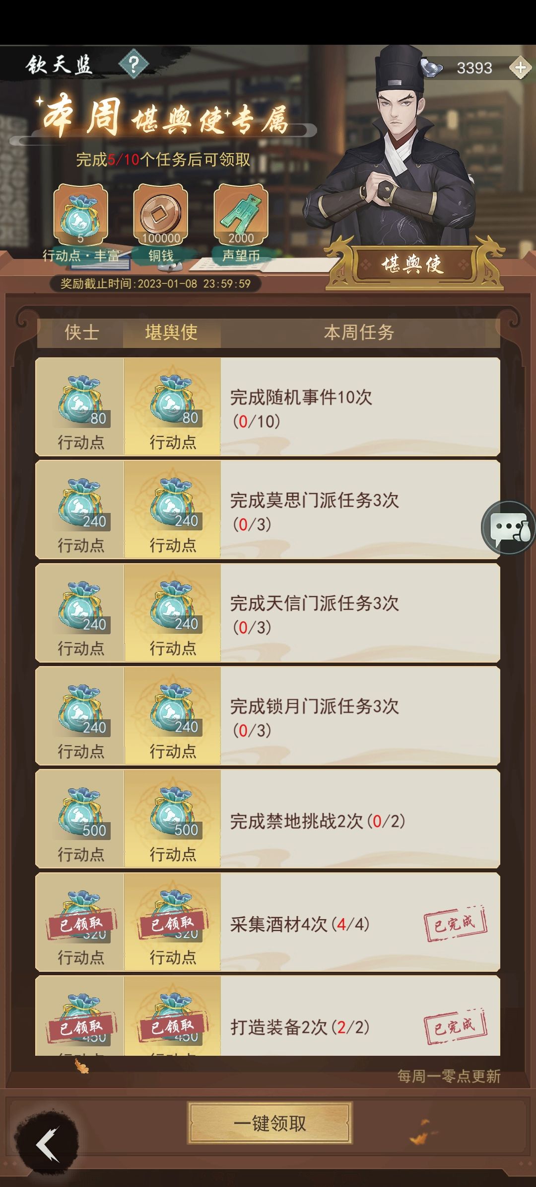 先说花费:钦天监99银+2天每天4次,共8次体力(一次600点)购买,目前有多出1200行动点。