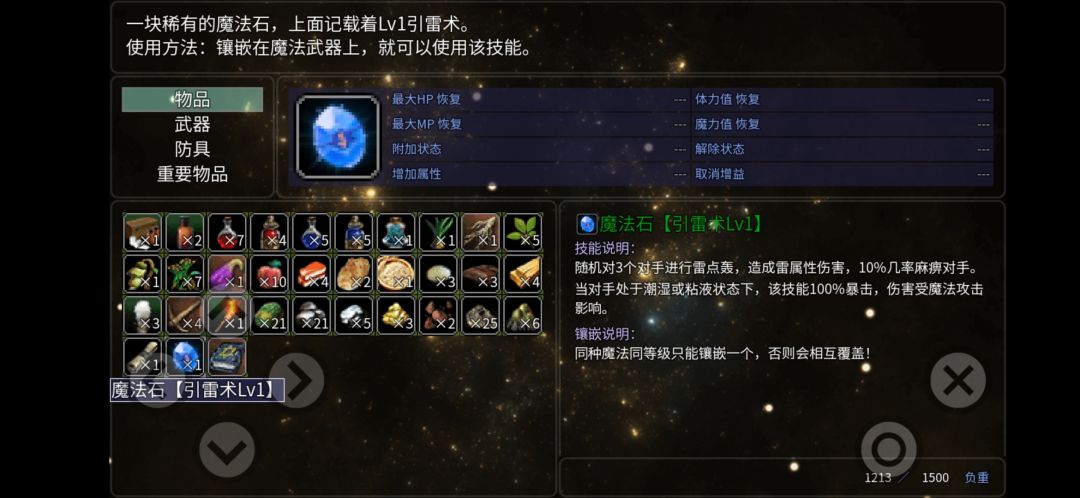之后把两边罐子砸了,然后开中间宝箱,一共能得一瓶蓝药一瓶红药,还有一个随机的镶嵌石