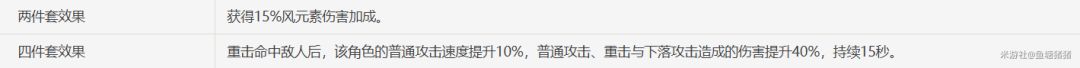 3、西风:积攒元素微粒,减缓全队充能压力,利于琴触发四件套效果。