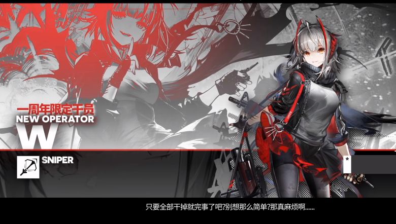 “我是W,你们每一个人的梦魇。”W把刀架在了那人的脖子上。没走多远,她又看见了一队萨卡兹人,打着特雷西斯的旗号。复仇的怒火让她可以在对方几十个人没反应过来的时候把刀架在敌人头领的脖子上,也会让她失去基本的判断。她只想着去杀掉那个带头的,却忘记考虑如何在几十个人的盯防下顺利脱身。