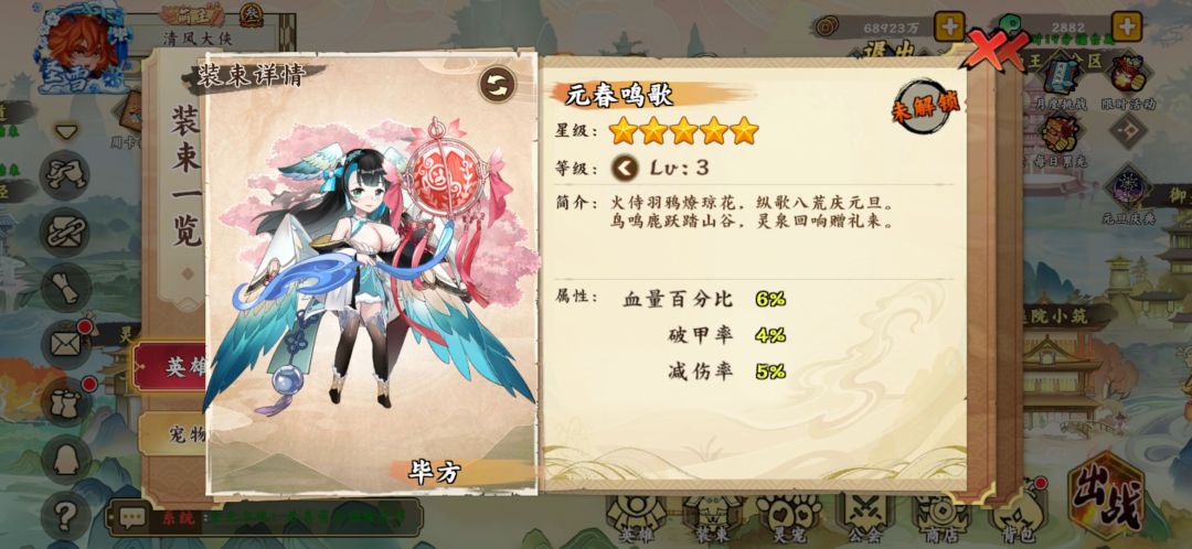 颜值够了,再来看看实力究竟如何。官方给出的定位是不同于樊梨花,而和杨娥、崔莺莺相似,相当于战刺,所以被动没给减伤,而和梨花一样,毕方的输出是跟血量挂钩的,直接无脑堆血量保证毕方的生存,同时也能获得不俗的输出