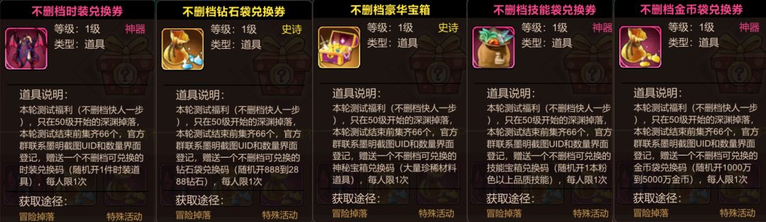 所有参与的都有奖:不删档非酋礼包一个,内含少量金币、钻石,让你不删档逆天改命!