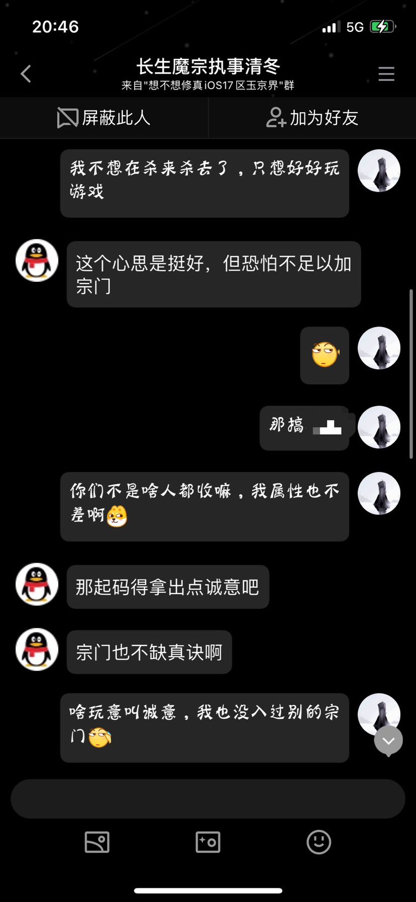 上面说到,盘古强上东极,如果他是实实在在的充值,或者低调一点,对于各路2W来说,不过是插个队的事情,谁也不会置喙,然而自他加入所谓的“魔宗”,担任“副宗主”之后,此团体便放肆起来,以言语威胁、59警告等极端方式逼迫正常玩家和无知萌新加入,入宗还需要交所谓的“投名状”,更制定了极其严苛的“宗训”。
