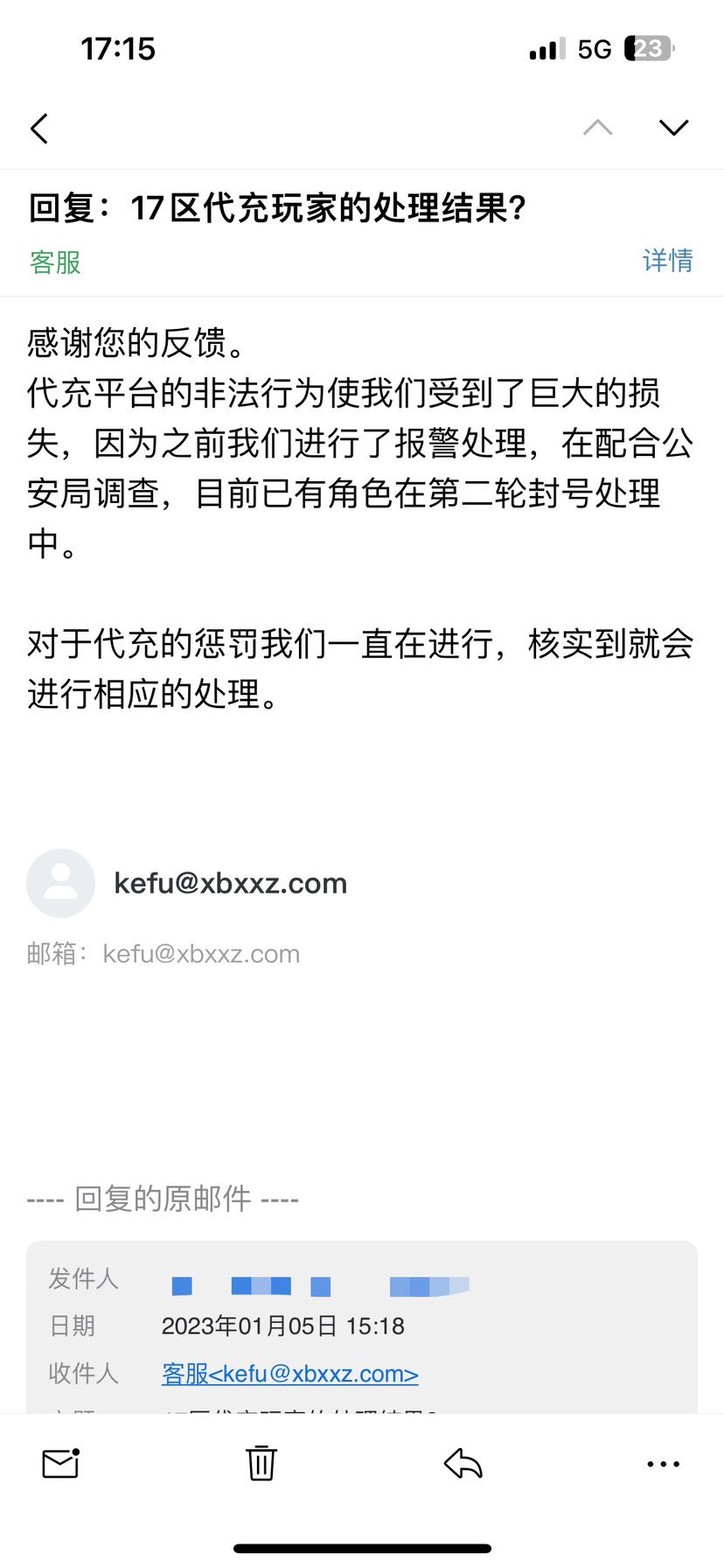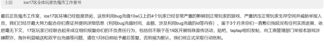 果不其然,2023年1月5日,在某热心群友致信官方后,得到了肯定的答复,盘古被封号,IOS所有区的账号都已无法登陆: