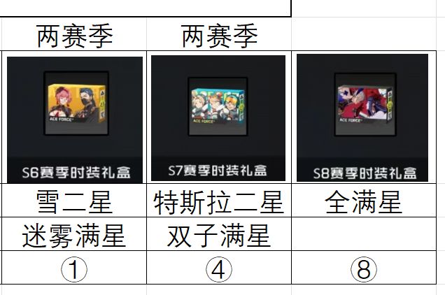 ④需要紫皮满星需要三个赛季(同时蓝皮满星溢出约50个碎片)。