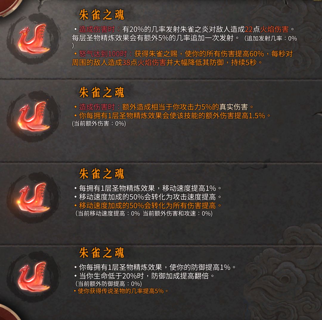力量首选是朱雀之魂 因为朱雀之魂叠起来以后增伤非常优秀。