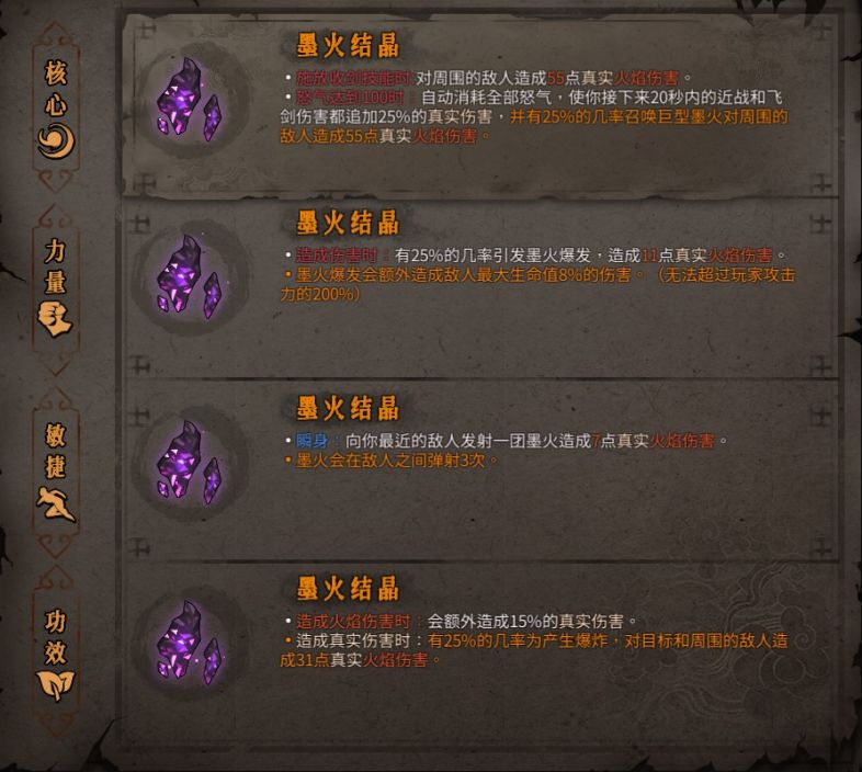 只有一个选择 火硝石 这个就不解释了 当然也有选择带墨火 走cd爆屏流的打法 但是我觉得太麻烦了 谁叫我手残嘞。