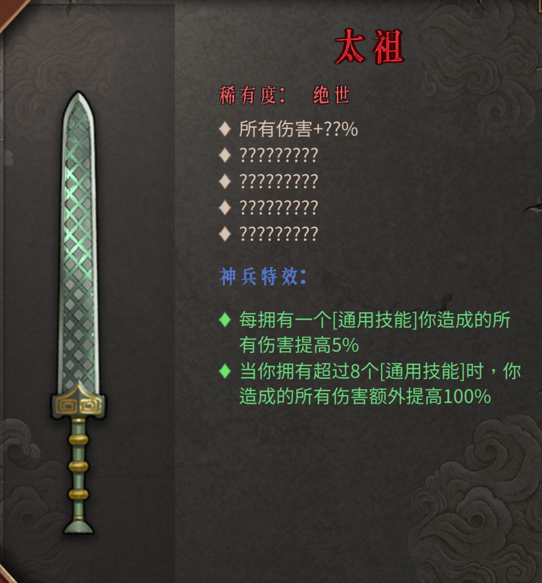 第一点 武器——太祖就是唯一真神,所有职业哪怕专武,后期伤害都不如太祖高,有了必选,如果没有选专武即可或者搭配自己主要圣物的武器也可以但是伤害会低一些