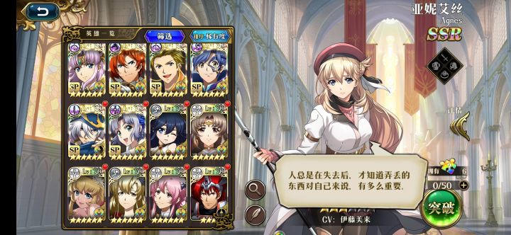 5、其他,降生之光(总结很牛逼,大长手,单点伤害极高,想要极限最好换个专属),银骑(总结很牛逼,伤害特高,而且有回血,有减攻击距离,有百分之10的全属性加成),尤利娅(感觉还行,法师版的艾尔文,技能倍率高,就是跑的特慢,不会被秒杀,打魔物伤害爆炸),大奶妹(二图第一个,感觉一点用没有,完全是是抽歪了,都是伤心事),狼妹(大佬养的特牛,平民感觉不好玩,而且必需有专属,有高配武器,高配附魔,上限很高),里奇(没练过,感觉看着就不咋的,不过可以当个t),女神化神(不用练,完全就是给降生之光开羁绊的),联动人物(联动人物一般都不会差),sr人物里面女绿毛可以练(这人好像能让所有人当t),克里斯可以练(能奶,有增益,还有伤害)
