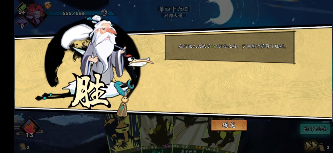 神雕(敌)的技能是塞牌,但是我用的赤练红 在神雕塞牌前就把神雕弄死了,于是他没能给我塞牌