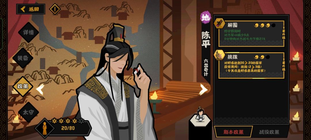 又己知李冰的治水可以反反复加军规大汉大汉有一个政策,每到500万人口时候,加一点科技,这正符合了这两个名臣的政策效果,还有一个政策可以反复的加科技,这样也就可以达成,特别高的战力和极高的军团规模,这样只要反复的点政策就可以打败匈奴,开局要先存粮钱,慢慢的可以把所有政策都点掉,这样结局分数会很高,几乎都能三星