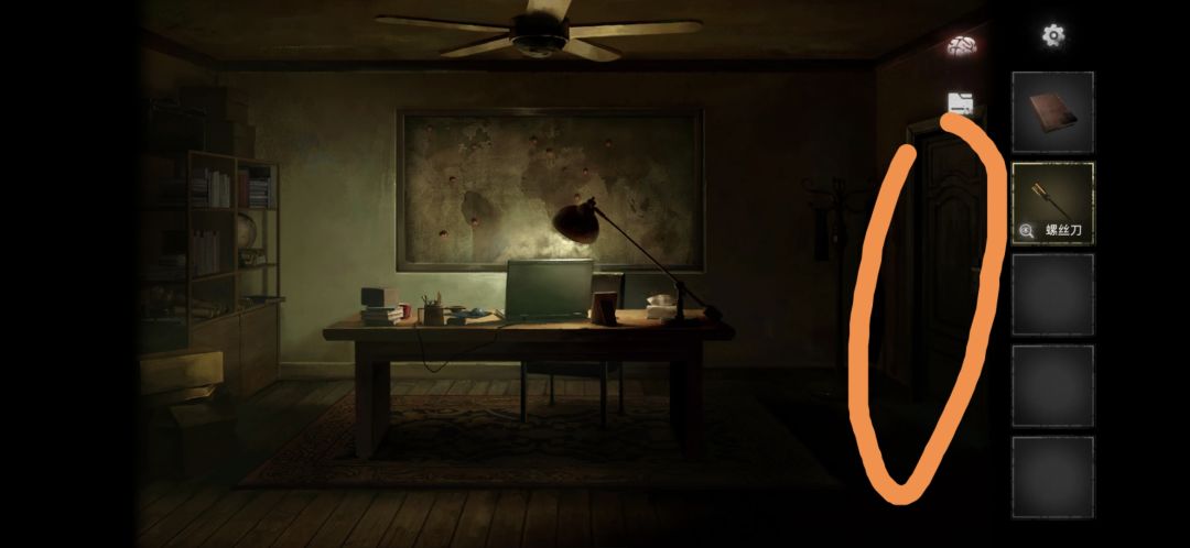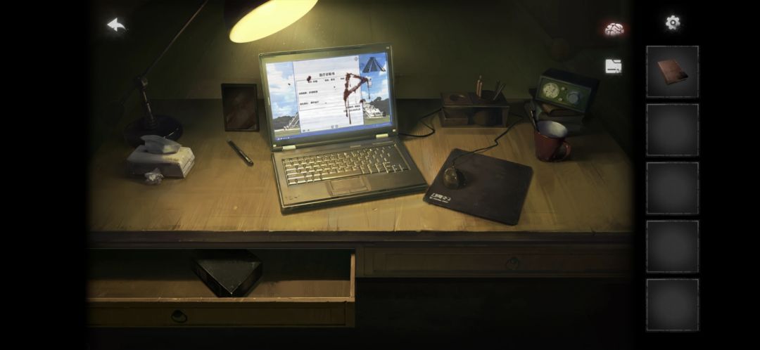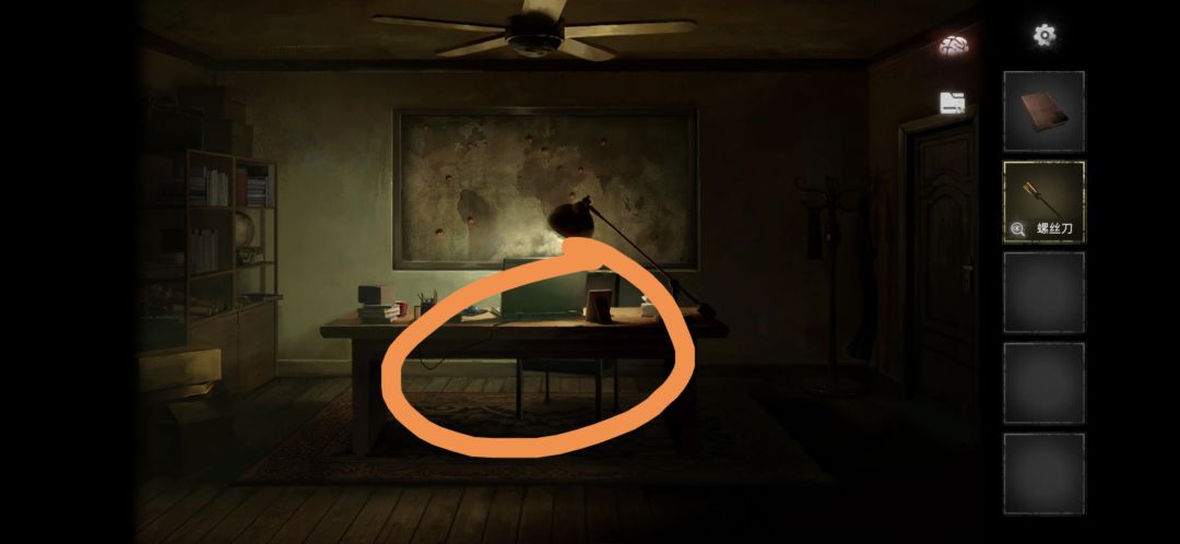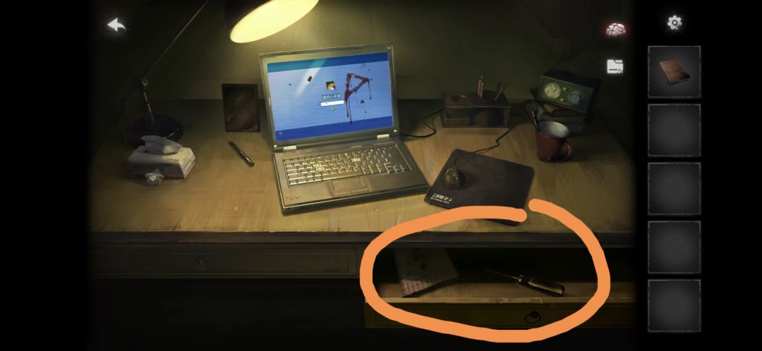 进屋后点击书桌,点击右边的抽屉,拾取笔记和螺丝刀