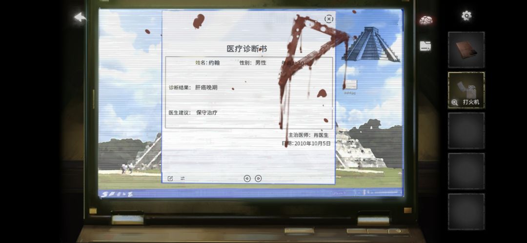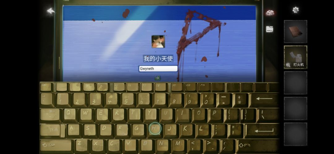 回到初始房间,把键帽按在电脑上,然后根据笔记中女儿的名字打开电脑