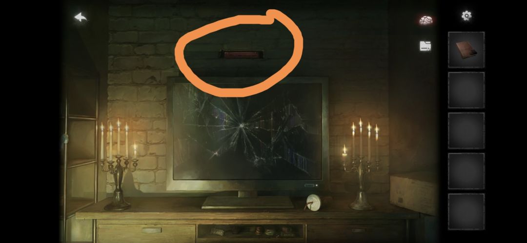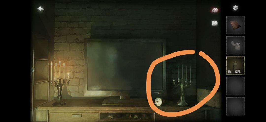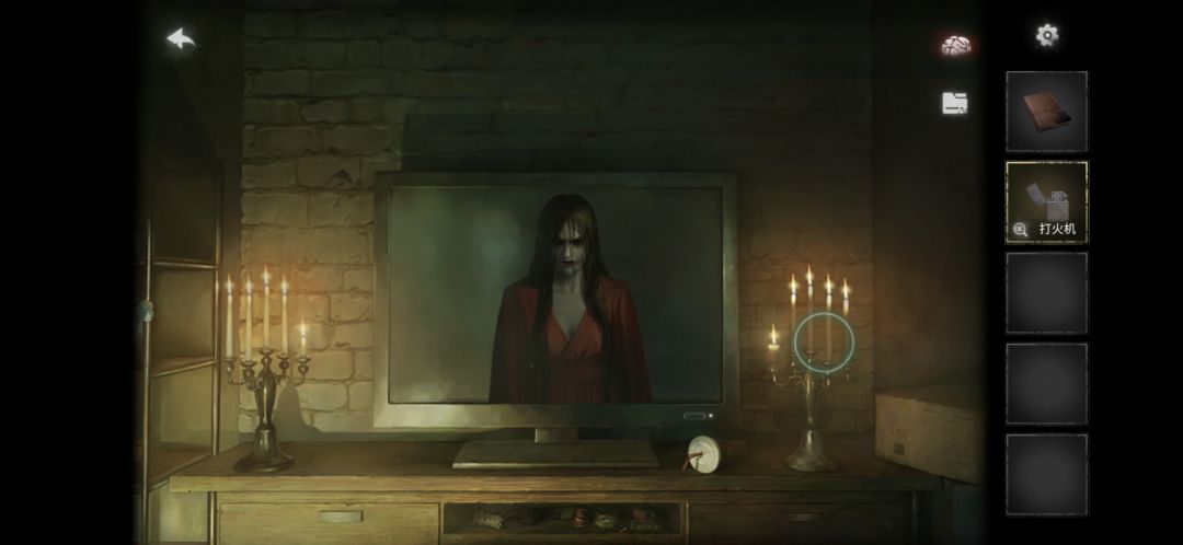 讲蜡烛按在电视旁边的烛台上,用打火机点亮蜡烛(有高能md吓死我),拾取红书
