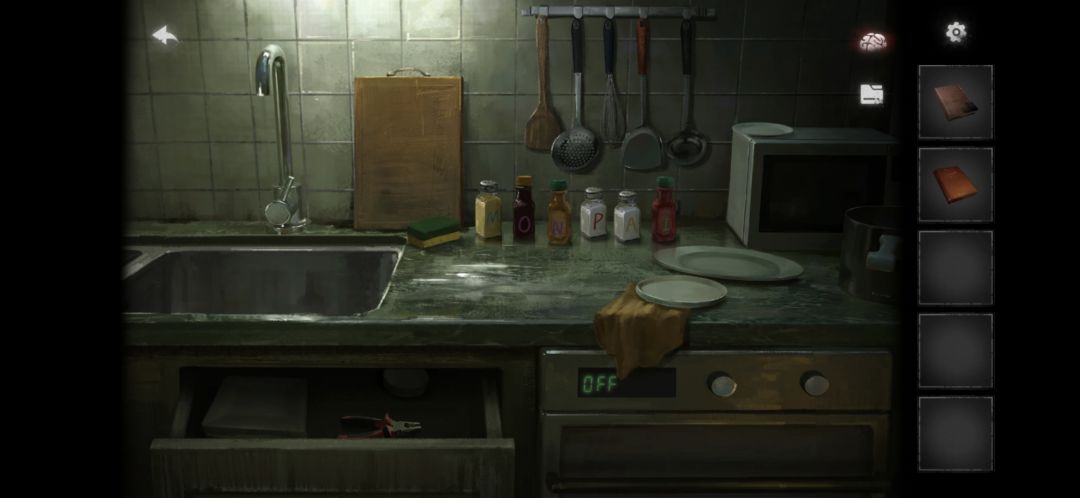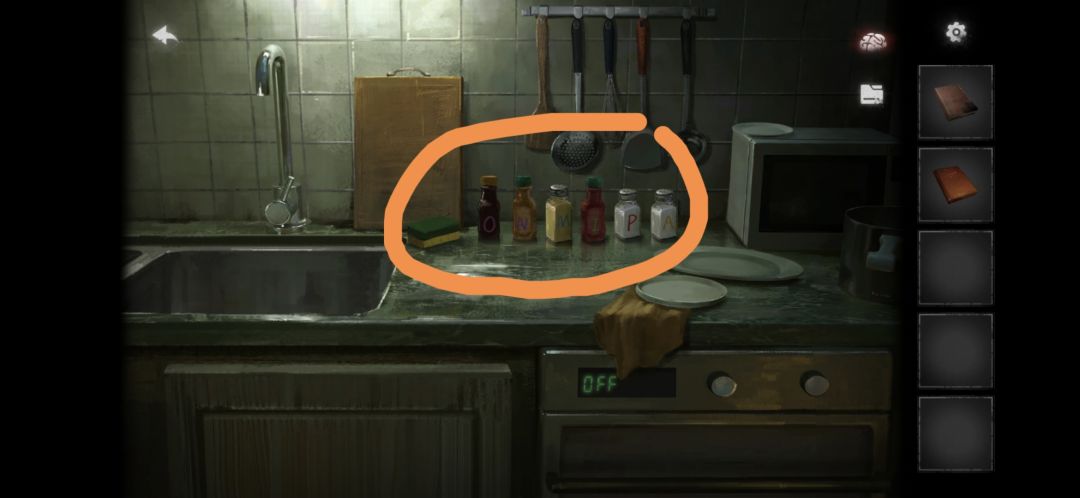 根据洋娃娃身上出现的字,给厨房里的调料瓶排序,获得钳子